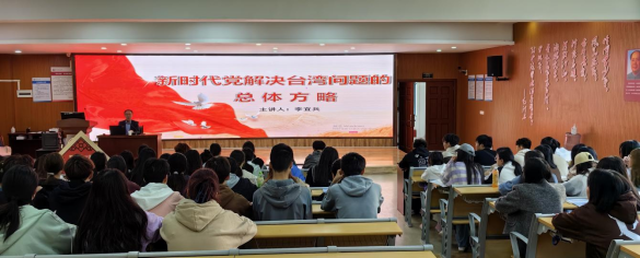 課堂上,圍繞臺灣問題的歷史經緯、中國共產黨推進祖國統一的歷史過程和多項舉措,李宜兵深刻闡明了臺灣是中國的一部分的歷史事實和法理事實,中國共產黨為解決臺灣問題、實現祖國完全統一所進行的不懈奮斗,并對黨的十九屆六中全會上形成的“解決臺灣問題的總體方略”進行了詳細解讀。