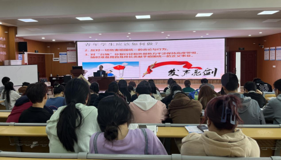 “要解決臺灣問題中國面臨哪些困難”“俄烏沖突能夠給中國哪些啟發”,講課過程中李宜兵教授深入淺出、旁征博引,和同學們共同探討這些事關祖國統一大業的關鍵問題,回應了青年學生的情感關切,實現了歷史深度與現實溫度的有機結合。李宜兵強調:實現祖國完全統一是全體中華兒女的共同愿望。新時代青年要堅信祖國必須統一,也必然統一。