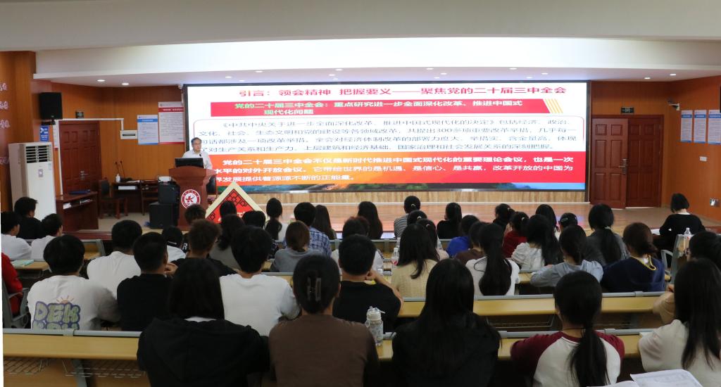 本網訊(通訊員 李甦/文 李賀剛/圖)為深入學習貫徹黨的二十屆三中全會精神,著力用黨的創新理論武裝思想、凝聚力量,引領廣大青年學生自覺把思想和行動統一到黨中央決策部署上來。10月12日上午,學校黨委書記鐘毓寧以《加快發展新質生產力》為主題,在思政講堂為人工智能學院2024級計算機專業學生講授了一堂生動且精彩的主題思政課。