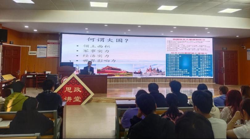 課堂上,李宜兵首先結(jié)合近期時政熱點(diǎn)——習(xí)近平總書記的喀山之行、朝鮮半島局勢,與同學(xué)們深入探討了何謂大國,以及以此為基礎(chǔ)形成的新時代中國外交布局。他通過講述烏克蘭危機(jī)的前世今生、巴以沖突解決的遙遙無期,使同學(xué)們強(qiáng)烈感受到了百年變局下國際格局深刻調(diào)整、大國競爭博弈加劇。在此背景下無論是全球經(jīng)濟(jì)復(fù)蘇與發(fā)展、世界和平與安全,還是全球治理,都需要大國開放合作、協(xié)調(diào)配合、攜手應(yīng)對。那么,作為負(fù)責(zé)任的大國,中國如何做好表率呢?李宜兵用詳實(shí)的數(shù)據(jù)、豐富的案例,為同學(xué)們講述了中國帶頭講平等、帶頭講合作、帶頭講誠信、帶頭講法治的生動實(shí)踐,為推動構(gòu)建長期穩(wěn)定、均衡發(fā)展的大國關(guān)系格局作出了不懈努力。最后,李宜兵寄語當(dāng)代青年:堅(jiān)定理想目標(biāo),始終與時代同呼吸共命運(yùn),做有信仰的人;珍惜青春韶華,始終與社會密接觸勤實(shí)踐,做有本領(lǐng)的人;自覺挺膺擔(dān)當(dāng),始終與祖國心連心手牽手,做有情懷的人。
