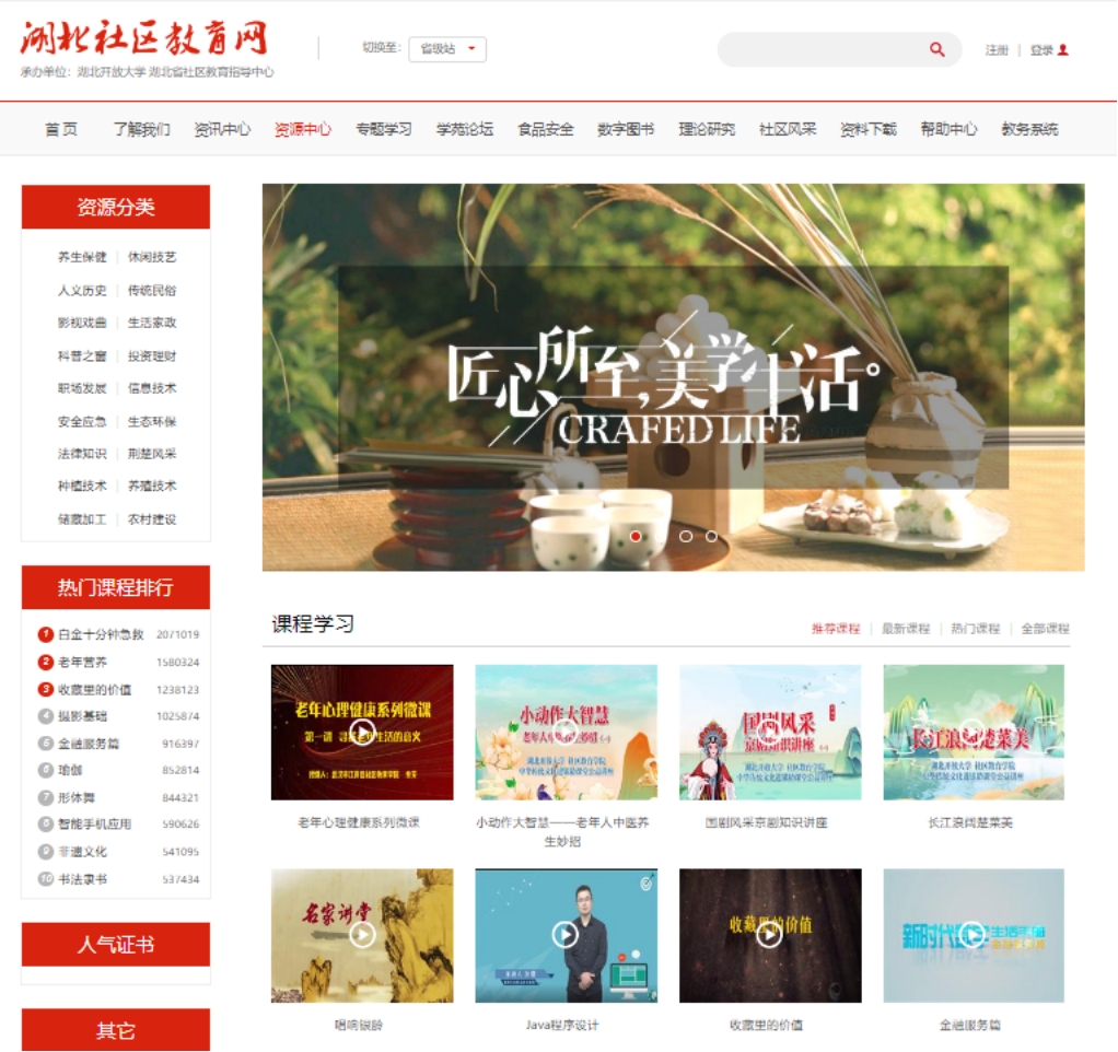湖北社區教育網老年教育線上課程資源庫截圖(部分)