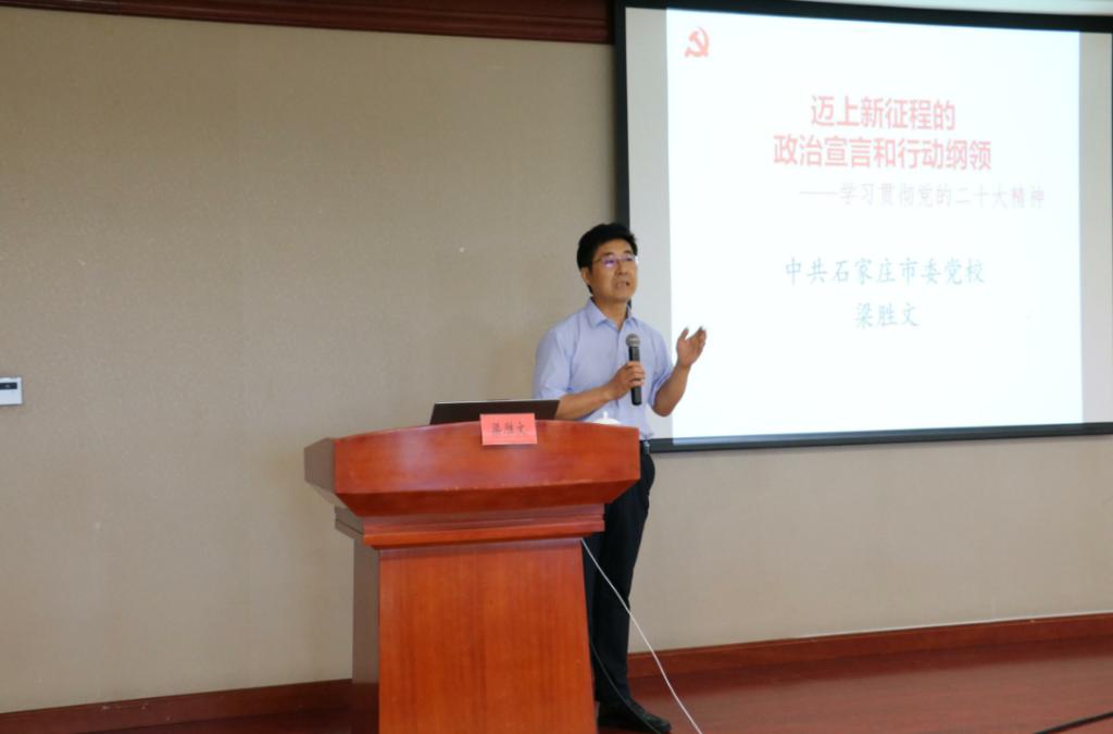 石家莊市委黨校梁勝文教授為學員們作了題為《邁上新征程的政治宣言和行動綱領》的專題報告。他以生動的語言帶領大家深入學習了黨的二十大報告的精神,他表示,黨的二十大報告為我們指明了未來發展的方向,我們要深入學習貫徹黨的二十大精神,把握中國式現代化的內涵與要求,將黨的二十大精神落實到各崗位的具體工作上。
